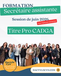 En juin, Dactylo'Cyn ouvre une session de sa formation "Devenir secrétaire assistante". Obtenez le Titre Pro CADGA (Chargé d'accueil et de gestion administrative), un diplôme reconnu par l'Etat.