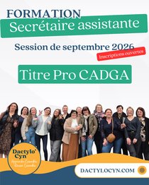 En juillet, Dactylo'Cyn ouvre une session de sa formation "Devenir secrétaire assistante". Obtenez le Titre Pro CADGA (Chargé d'accueil et de gestion administrative), un diplôme reconnu par l'Etat.